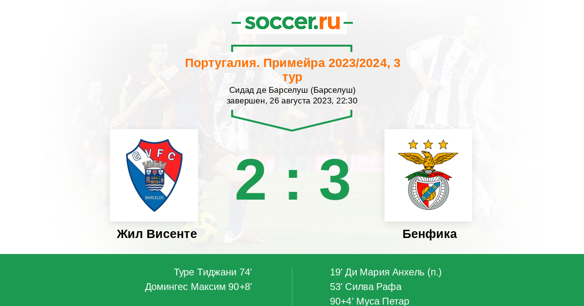 Протокол матча Жил Висенте против Бенфика