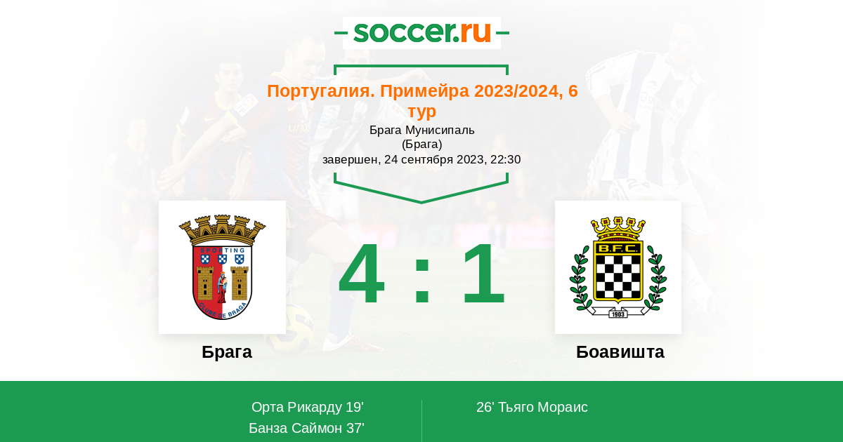Протокол матча Брага против Боавишта