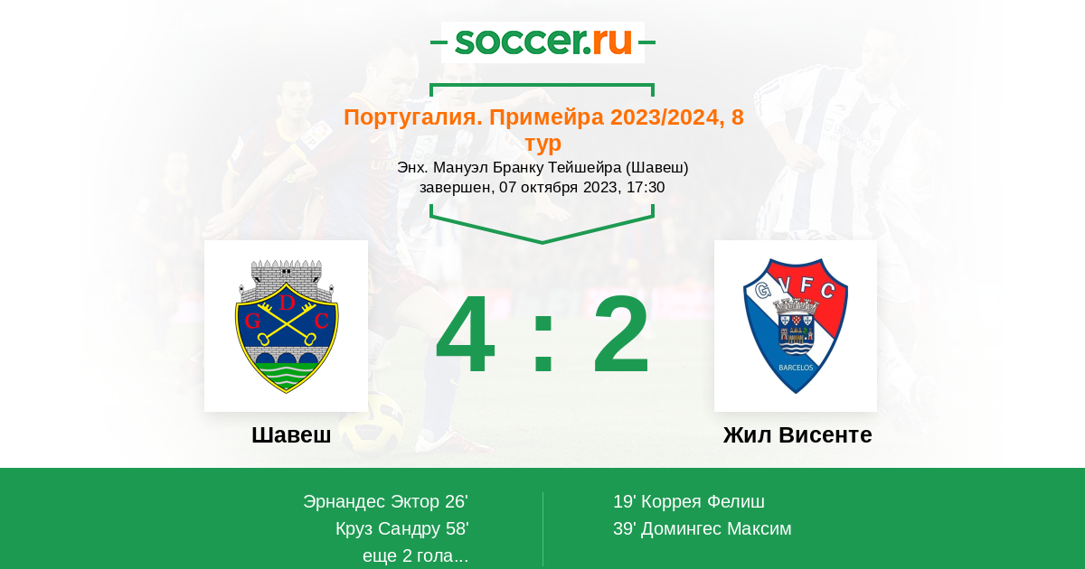 Протокол матча Шавеш против Жил Висенте