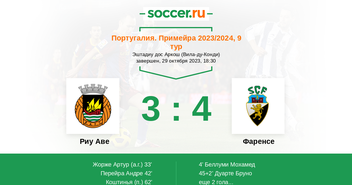 Протокол матча Риу Аве против Фаренсе