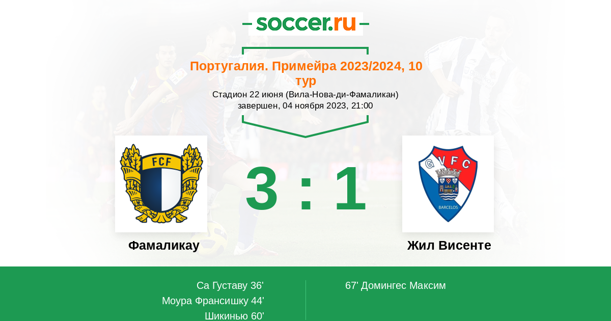 60' (3:0) Шикинью (10) (Моура Франсишку (74))