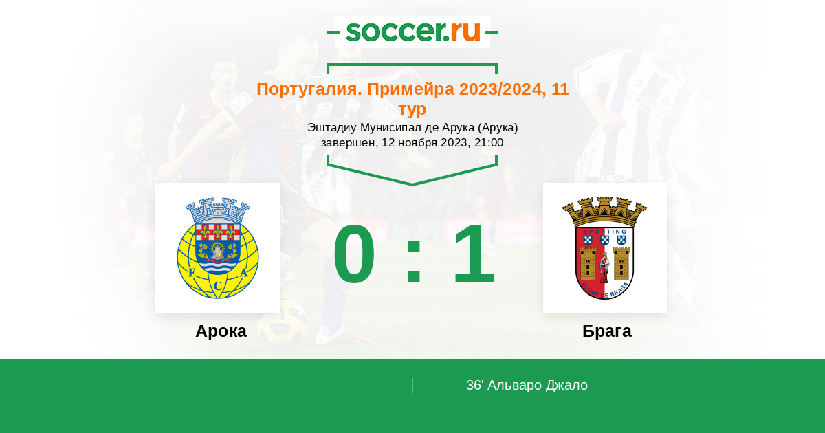 Протокол матча Арока против Брага