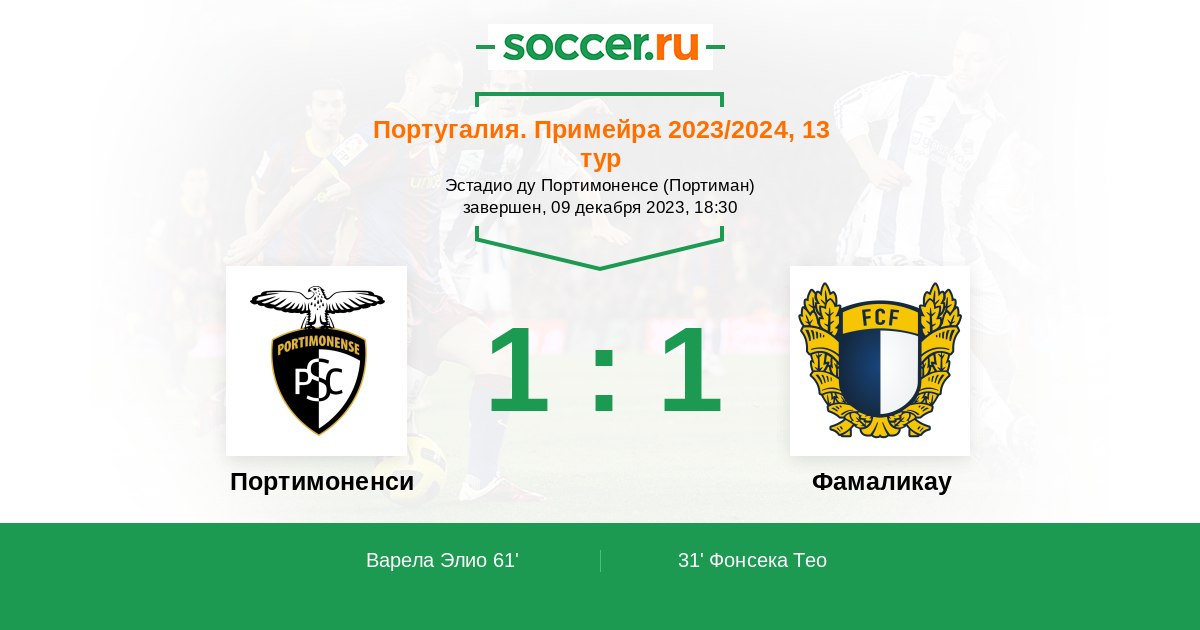 Протокол матча Портимоненси против Фамаликау