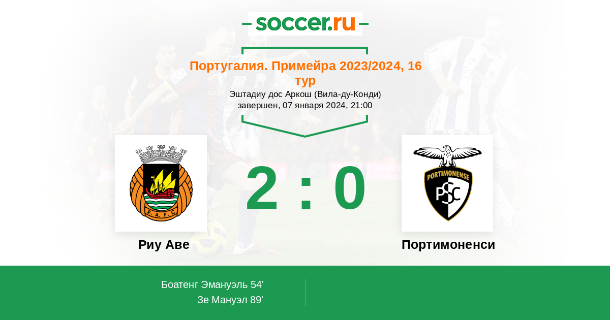 Протокол матча Риу Аве против Портимоненси