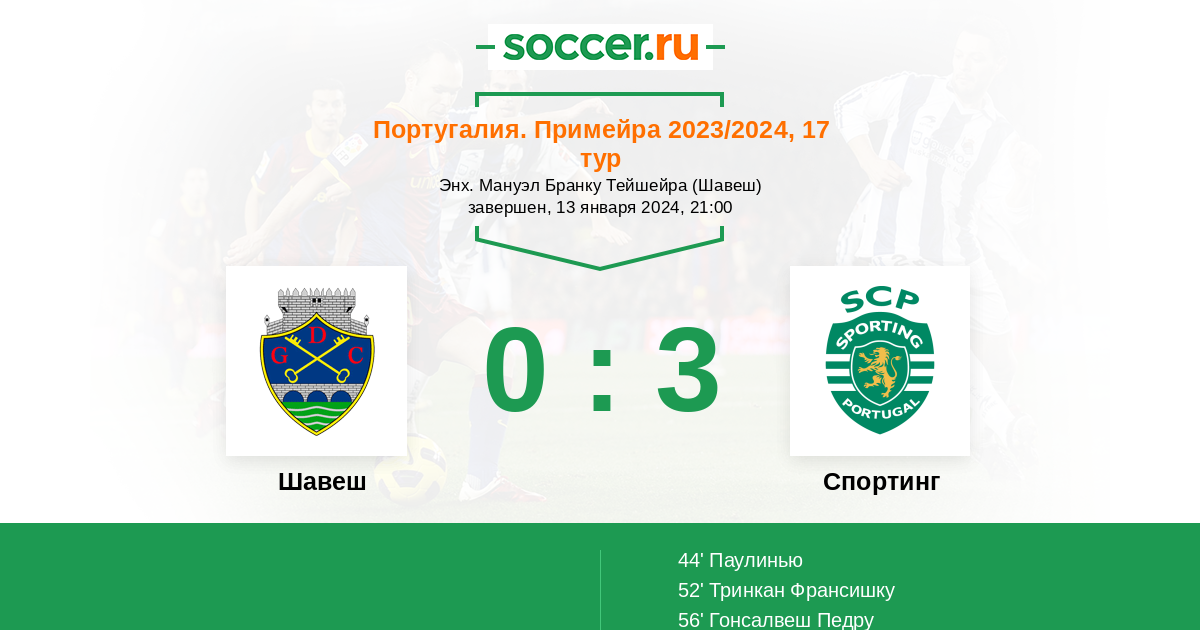 Протокол матча Шавеш против Спортинг