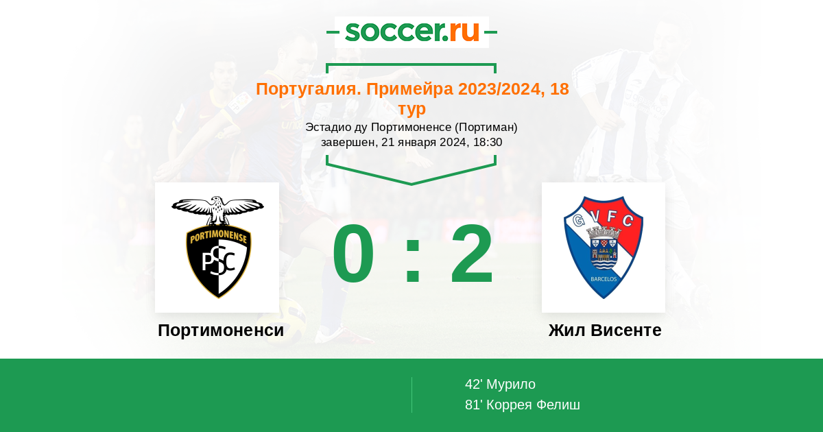 Протокол матча Портимоненси против Жил Висенте