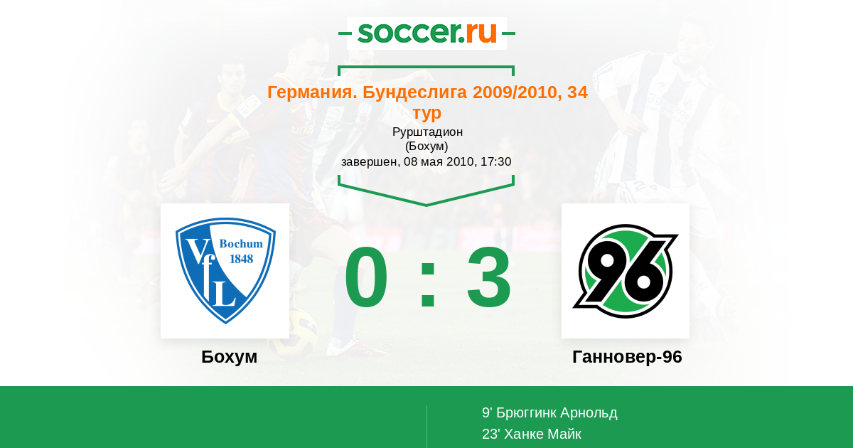Протокол матча Бохум против Ганновер-96