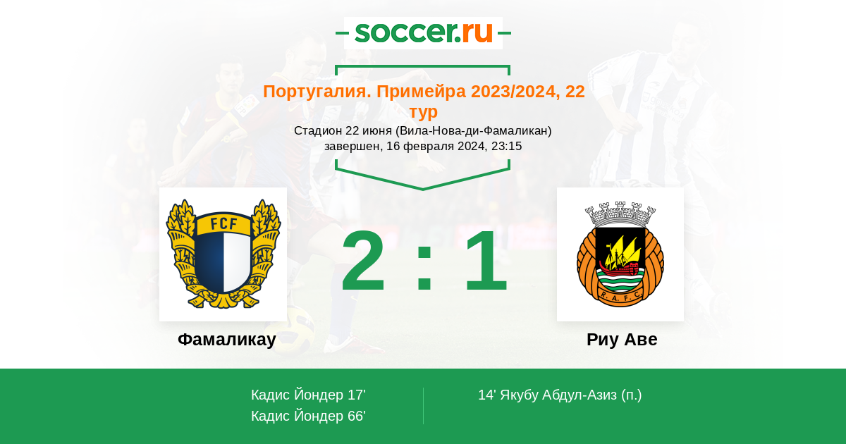 Протокол матча Фамаликау против Риу Аве