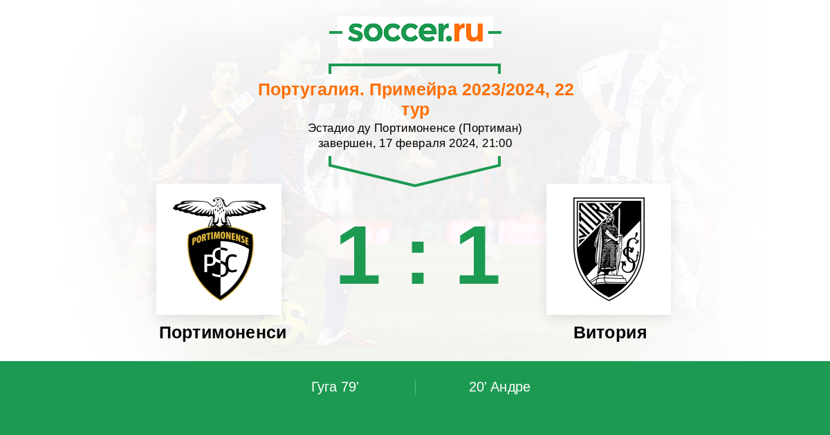 Протокол матча Портимоненси против Витория