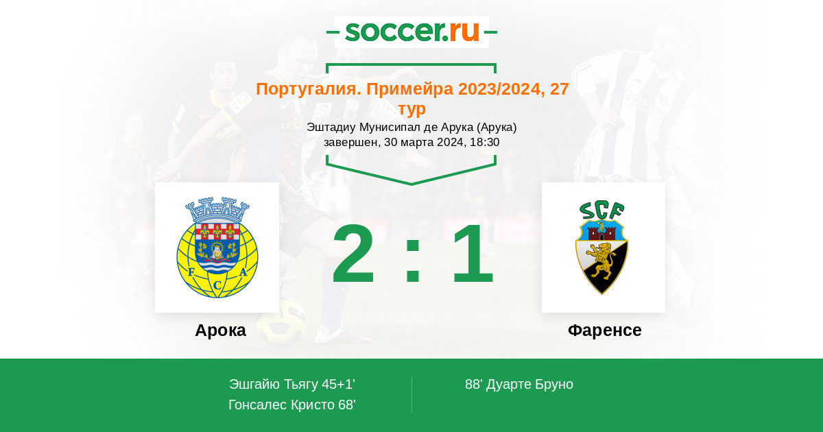 Протокол матча Арока против Фаренсе
