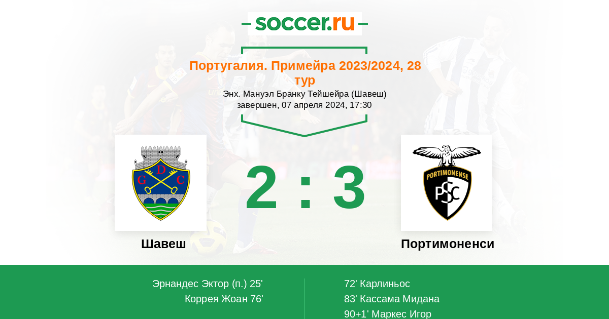 Протокол матча Шавеш против Портимоненси