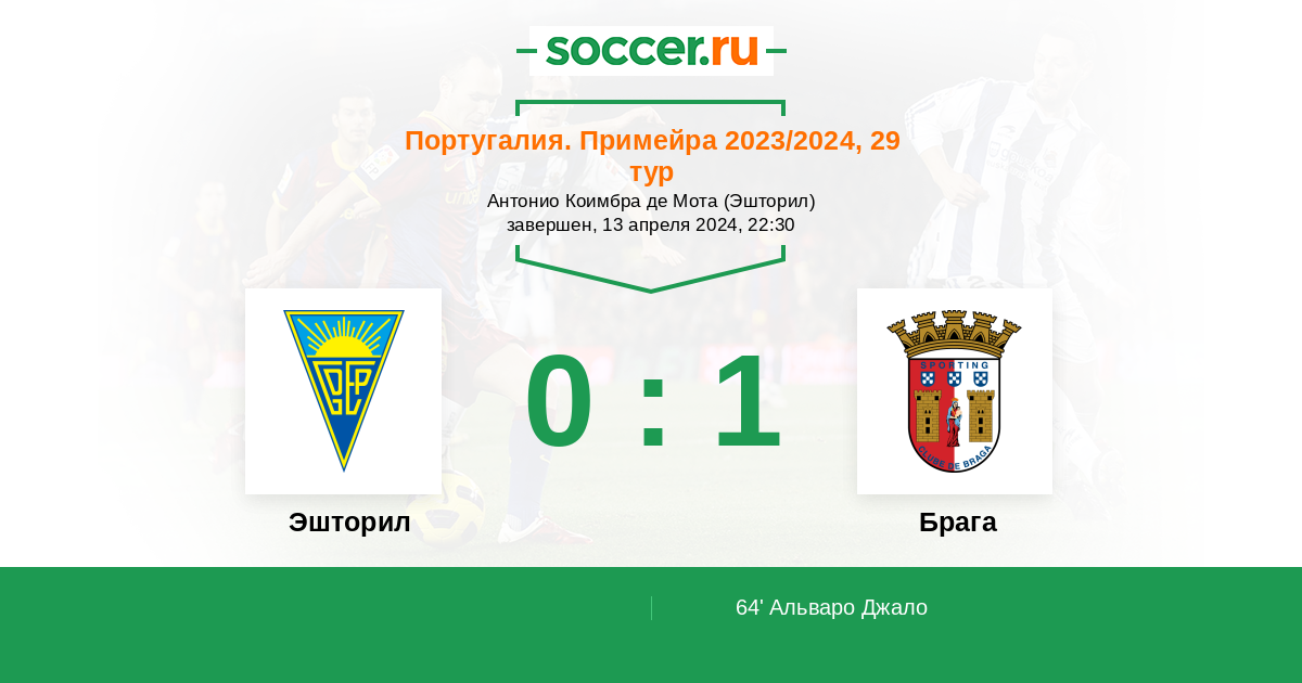 Протокол матча Эшторил против Брага