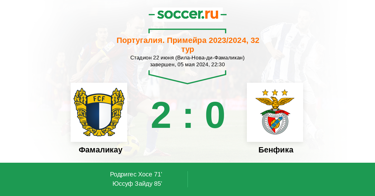 Протокол матча Фамаликау против Бенфика