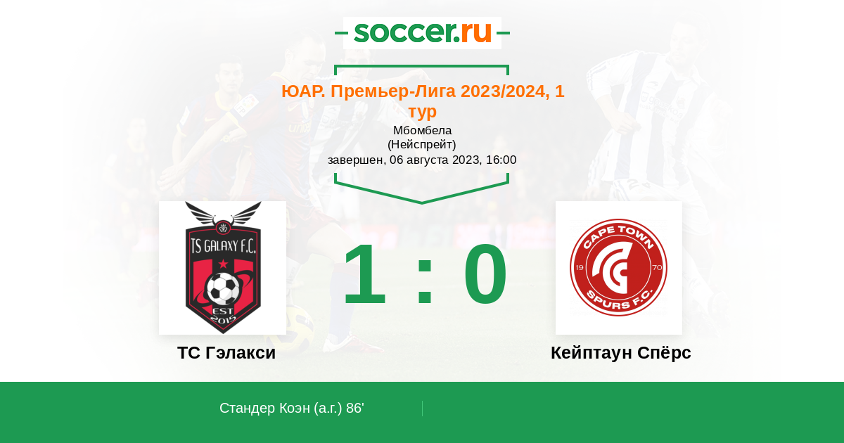 Протокол матча ТС Гэлакси против Кейптаун Спёрс