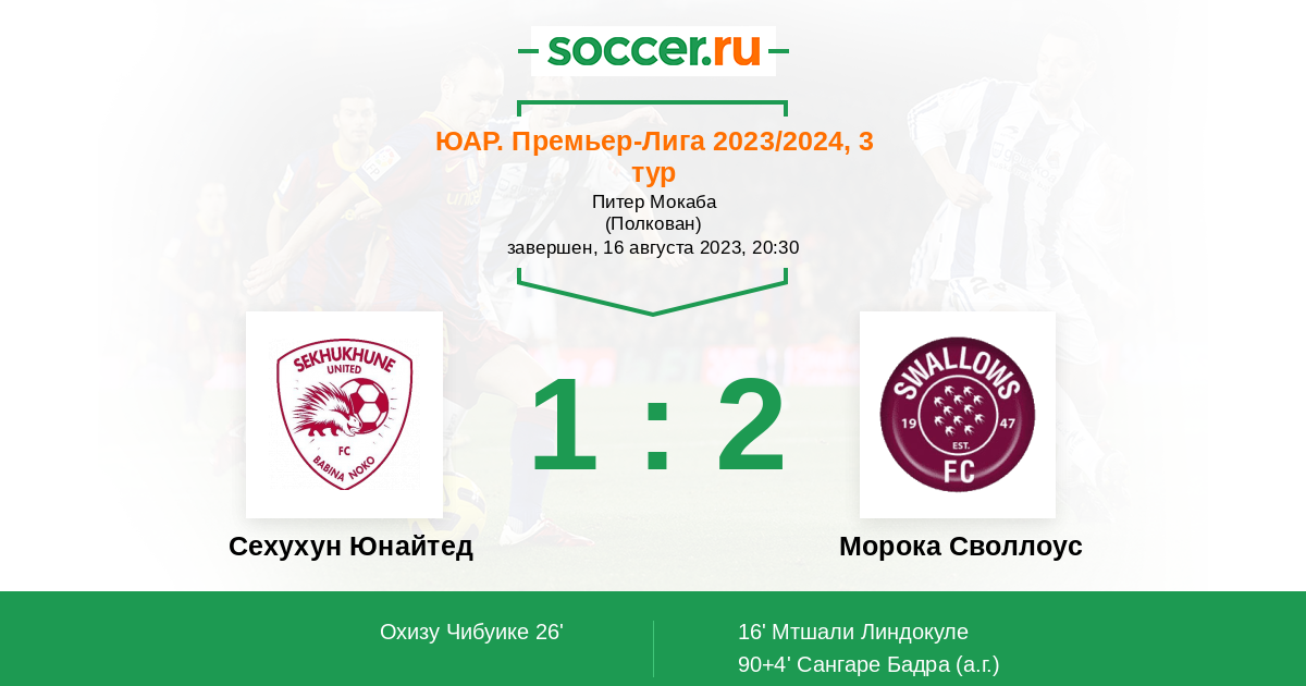 Протокол матча Сехухун Юнайтед против Морока Своллоус