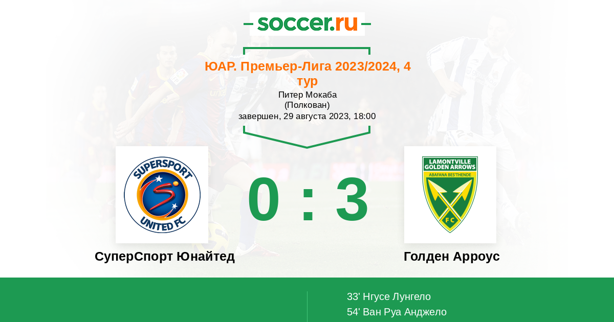 Протокол матча СуперСпорт Юнайтед против Голден Арроус