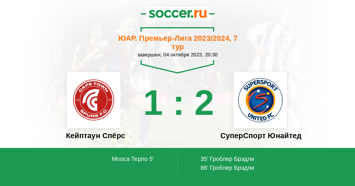 Протокол матча Кейптаун Спёрс против СуперСпорт Юнайтед