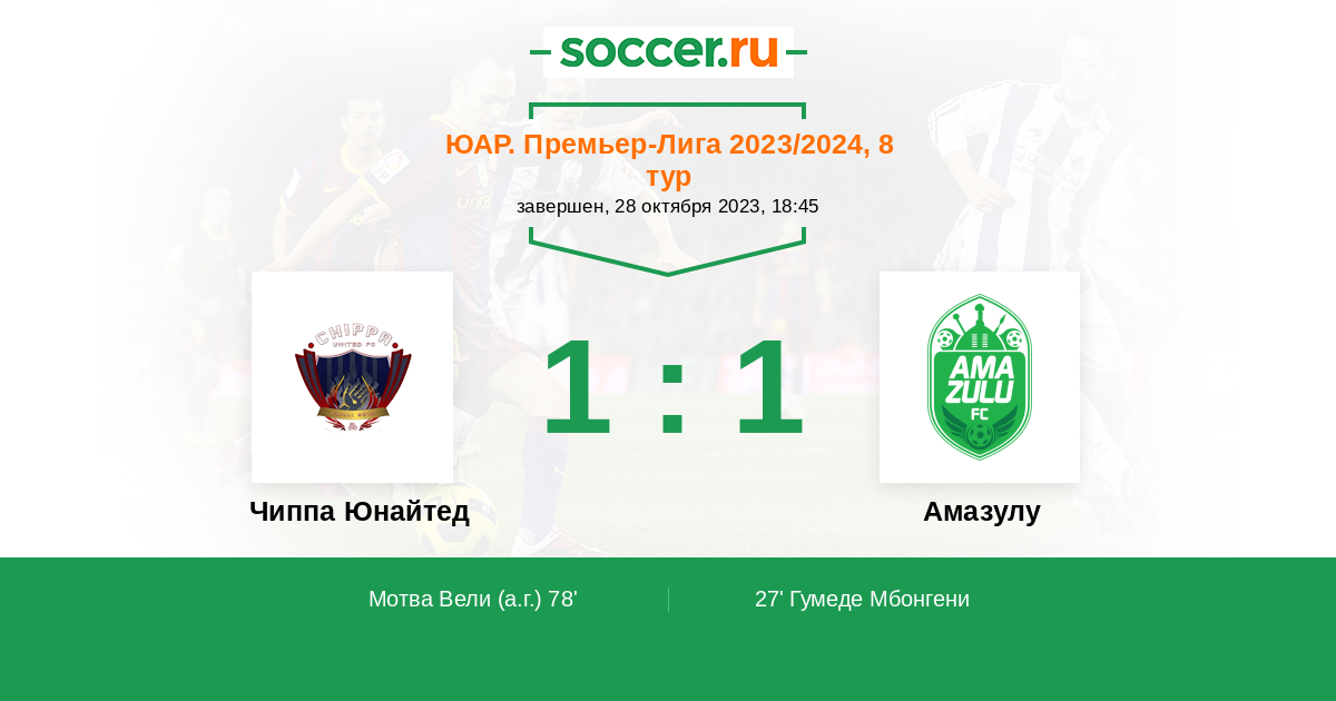 Протокол матча Чиппа Юнайтед против Амазулу