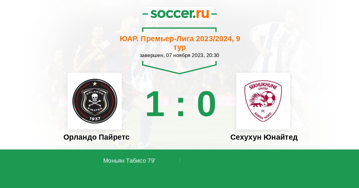 Протокол матча Орландо Пайретс против Сехухун Юнайтед