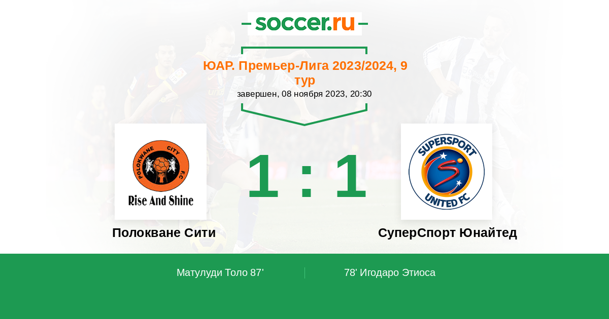 Протокол матча Полокване Сити против СуперСпорт Юнайтед
