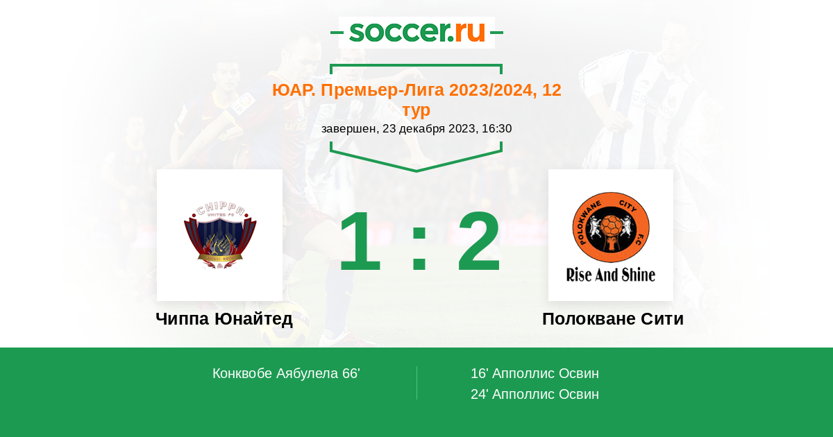 Протокол матча Чиппа Юнайтед против Полокване Сити