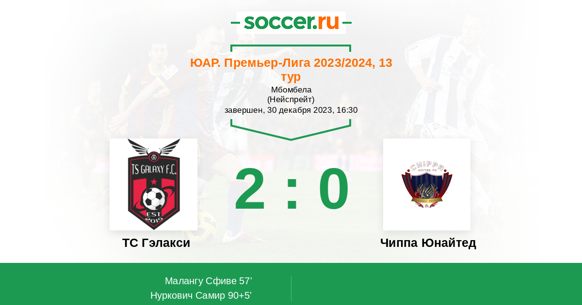Протокол матча ТС Гэлакси против Чиппа Юнайтед