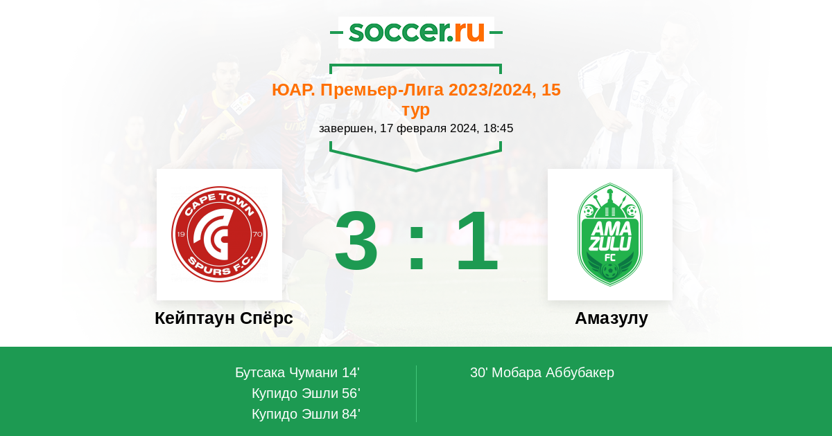 30' (1:1) Мобара Аббубакер (2) (Экстейн Хендрик Пуле (27))