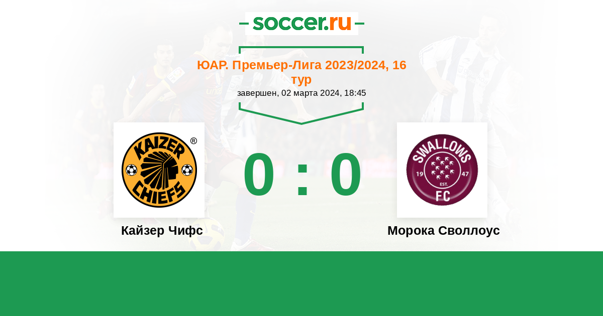 Протокол матча Кайзер Чифс против Морока Своллоус