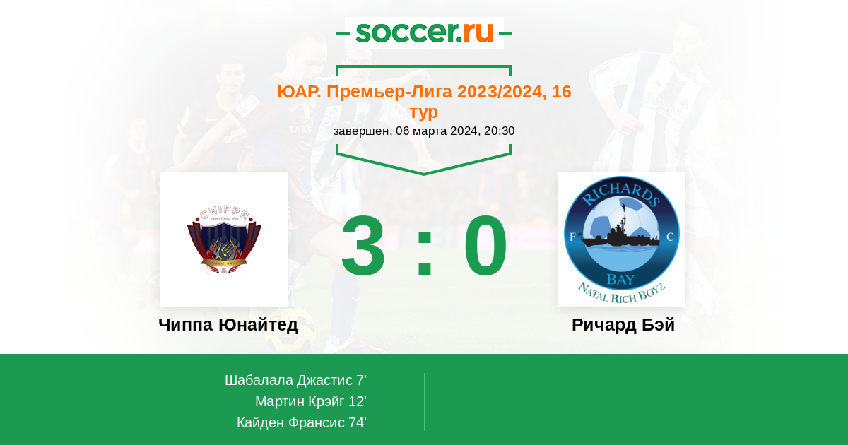 Протокол матча Чиппа Юнайтед против Ричард Бэй