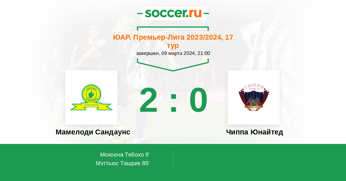 Протокол матча Мамелоди Сандаунс против Чиппа Юнайтед