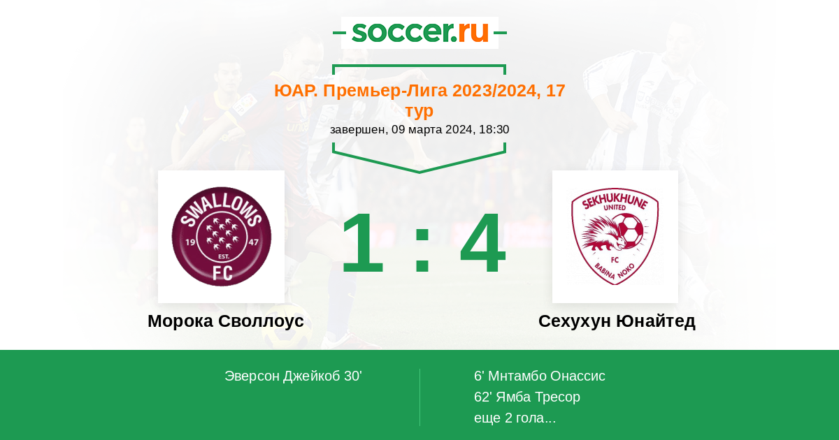 Протокол матча Морока Своллоус против Сехухун Юнайтед