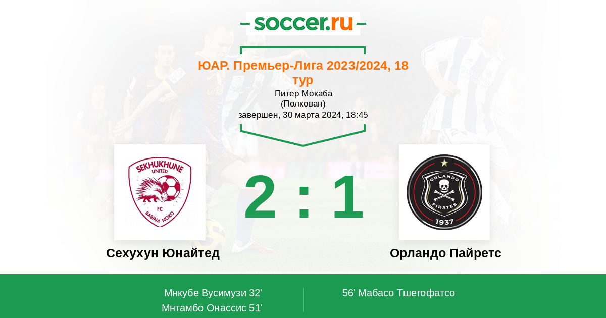 Протокол матча Сехухун Юнайтед против Орландо Пайретс