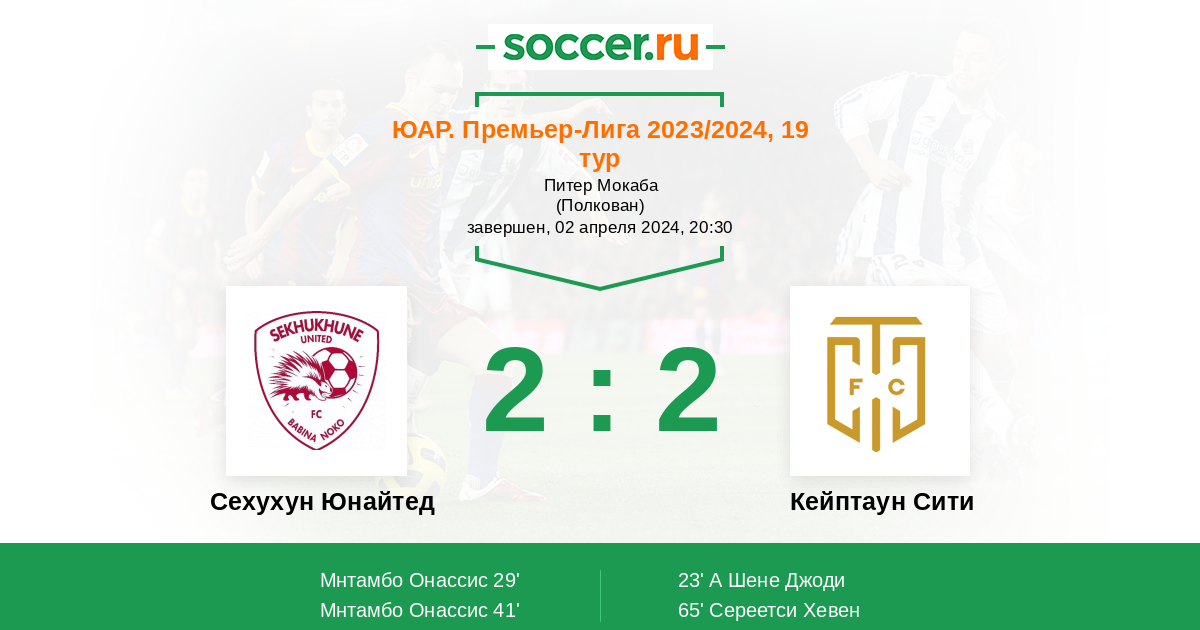 Протокол матча Сехухун Юнайтед против Кейптаун Сити