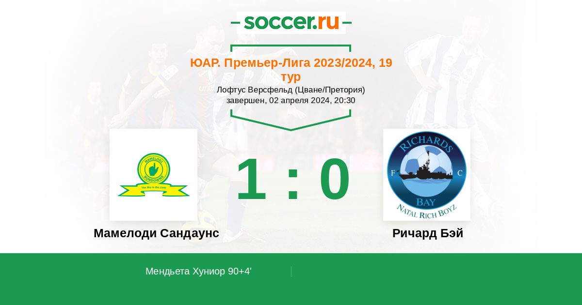 Протокол матча Мамелоди Сандаунс против Ричард Бэй