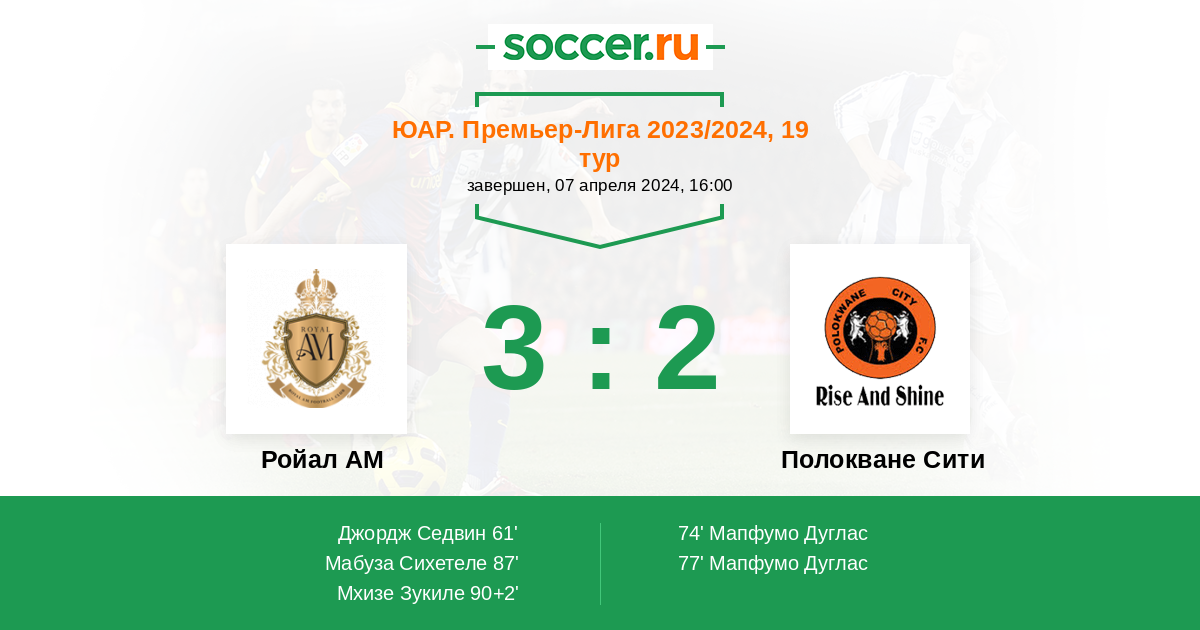 Протокол матча Ройал АМ против Полокване Сити