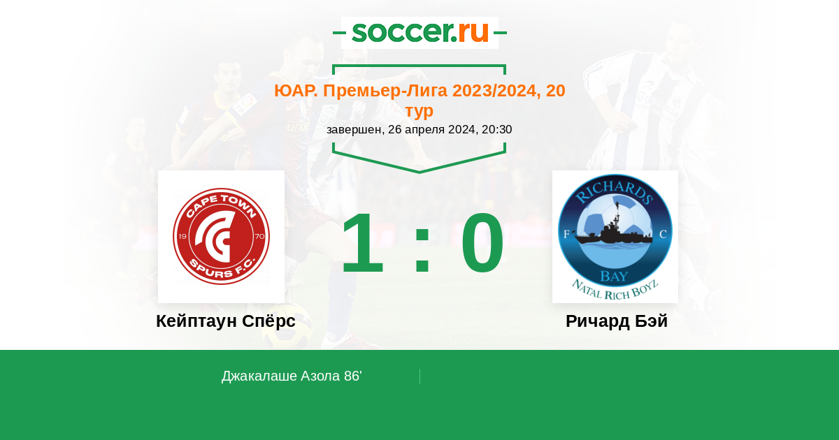 Протокол матча Кейптаун Спёрс против Ричард Бэй