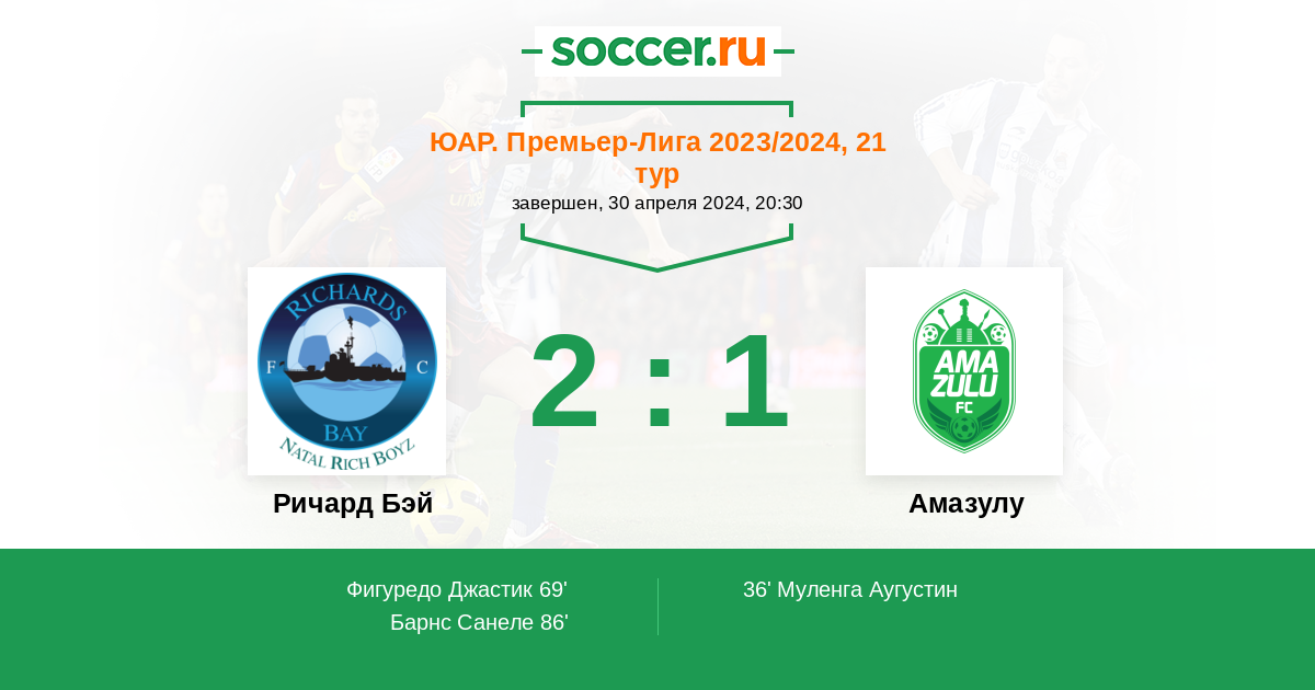 86' (2:1) Барнс Санеле (30) (Ндаба Нкосихона (3))
