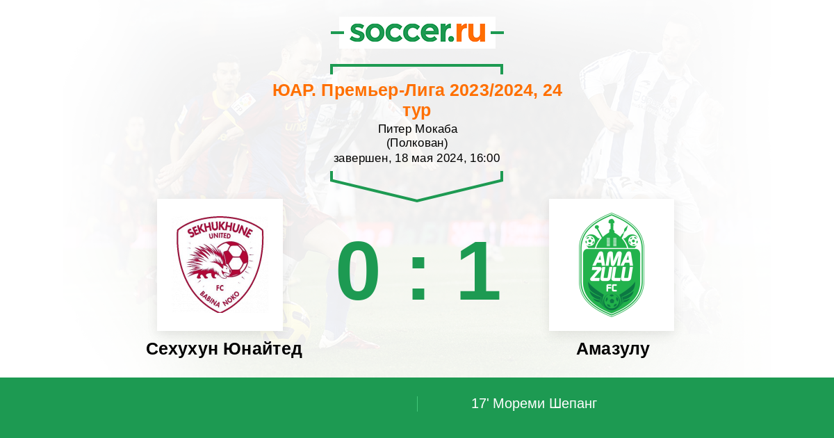 Протокол матча Сехухун Юнайтед против Амазулу