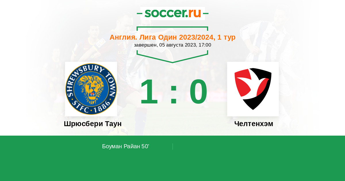 Протокол матча Шрюсбери Таун против Челтенхэм