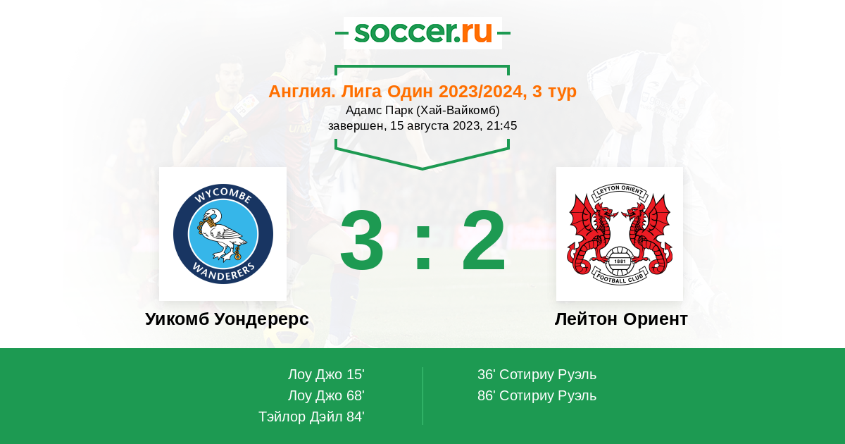 Протокол матча Уикомб Уондерерс против Лейтон Ориент