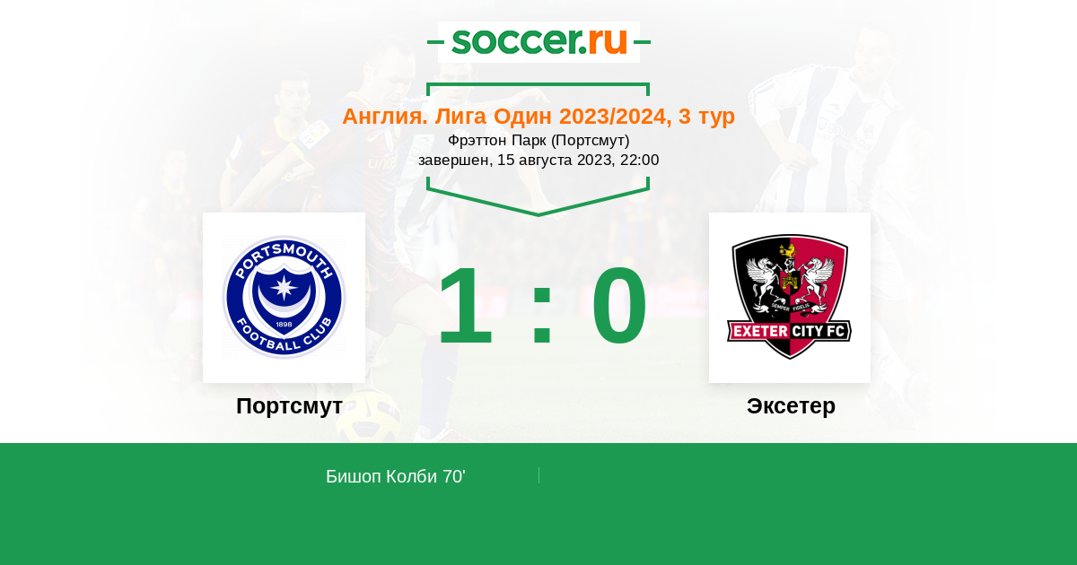 Протокол матча Портсмут против Эксетер