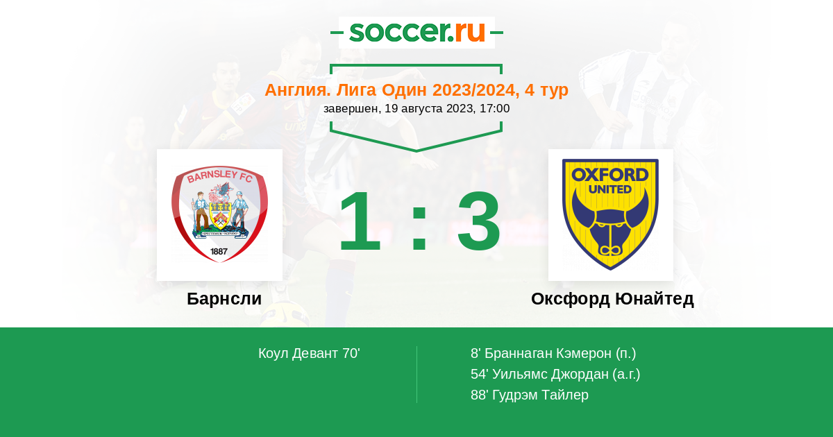 Протокол матча Барнсли против Оксфорд Юнайтед
