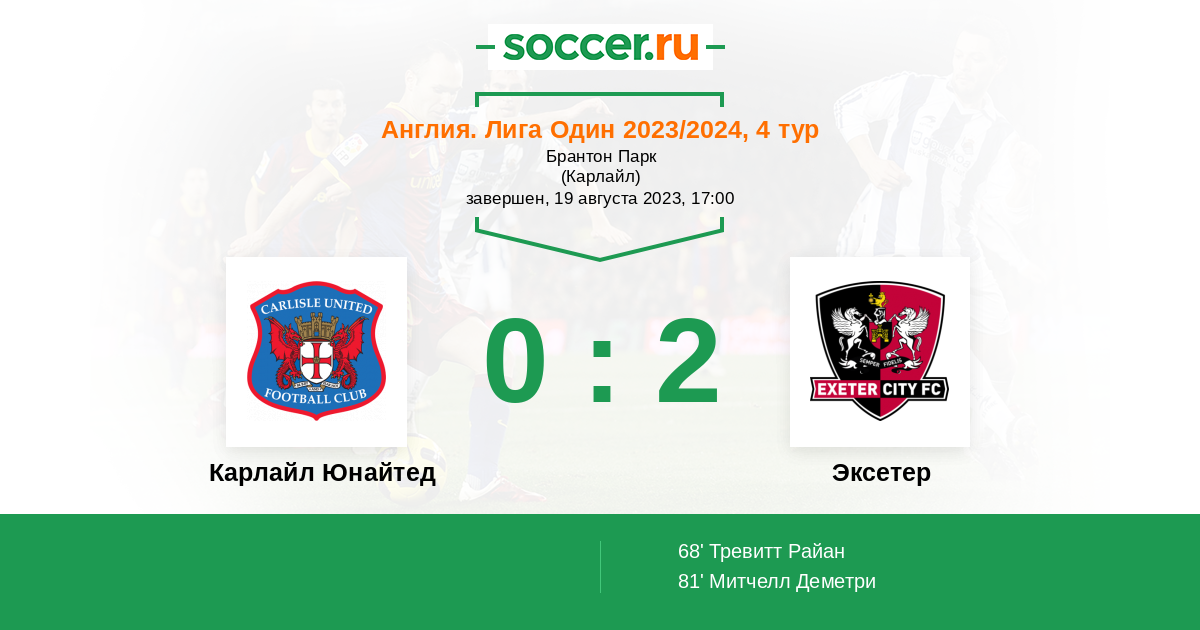 Протокол матча Карлайл Юнайтед против Эксетер