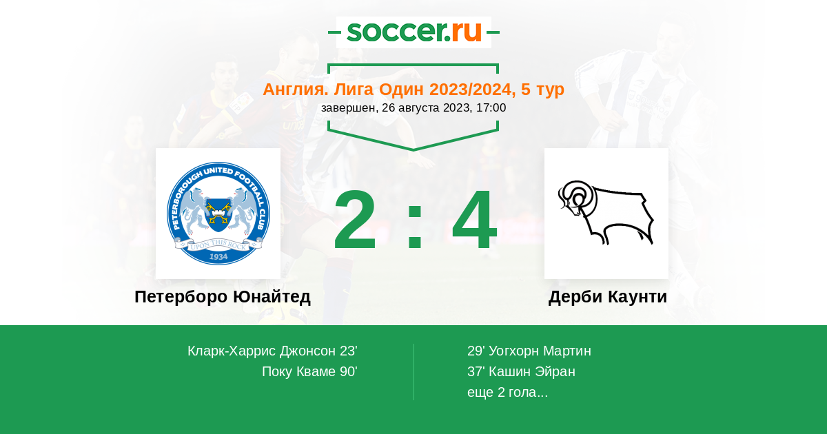 Протокол матча Петерборо Юнайтед против Дерби Каунти