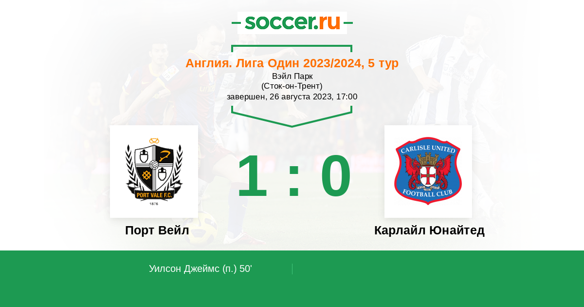 Протокол матча Порт Вейл против Карлайл Юнайтед
