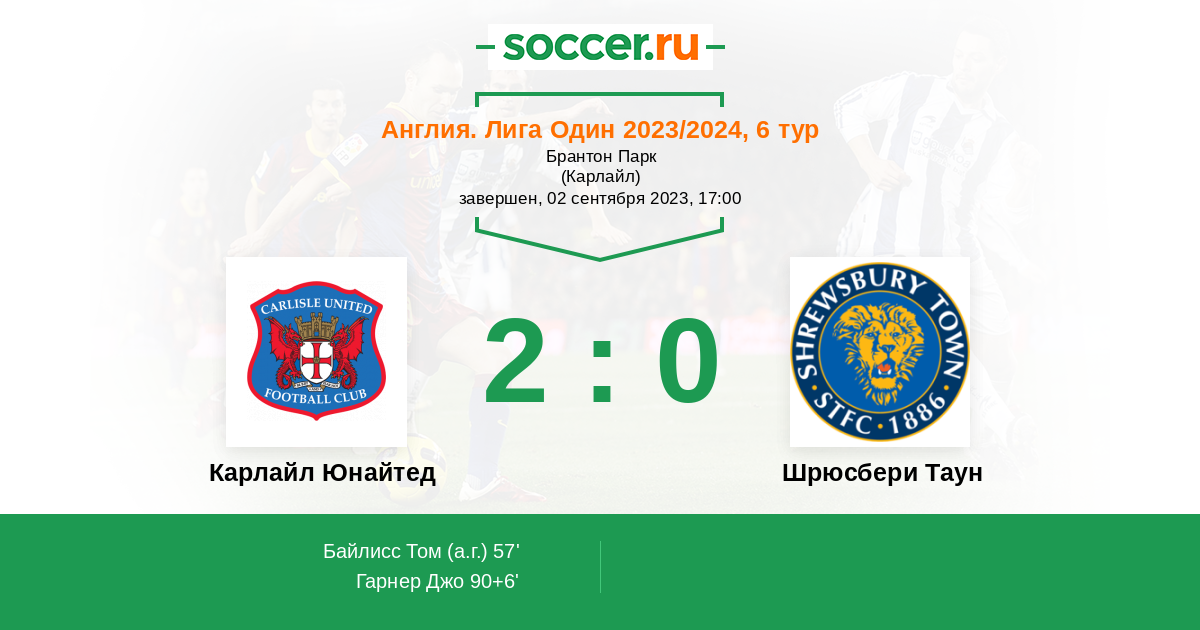 Протокол матча Карлайл Юнайтед против Шрюсбери Таун