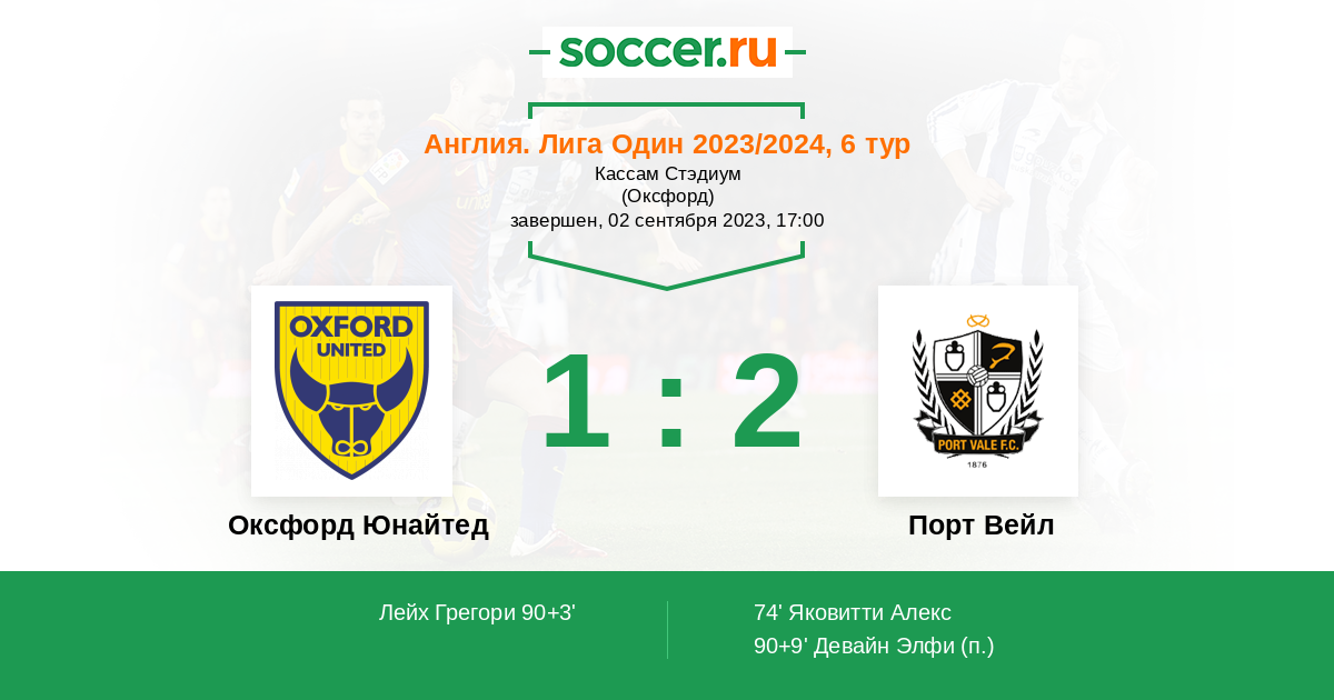 Протокол матча Оксфорд Юнайтед против Порт Вейл