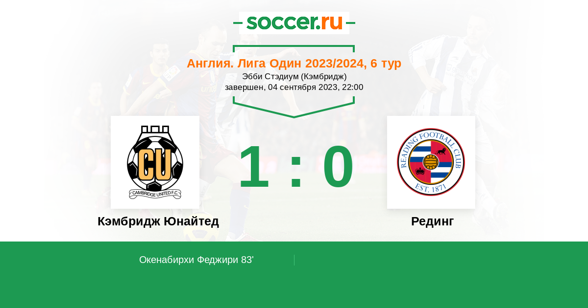Протокол матча Кэмбридж Юнайтед против Рединг