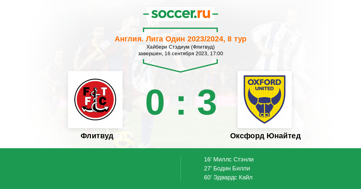 Протокол матча Флитвуд против Оксфорд Юнайтед