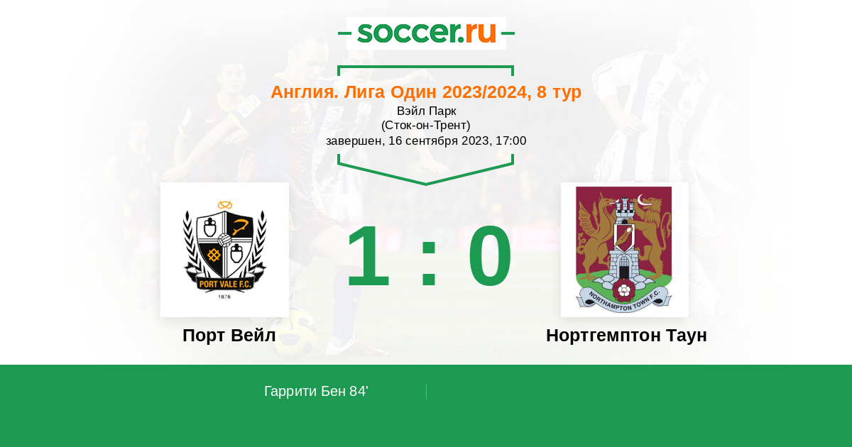 Протокол матча Порт Вейл против Нортгемптон Таун